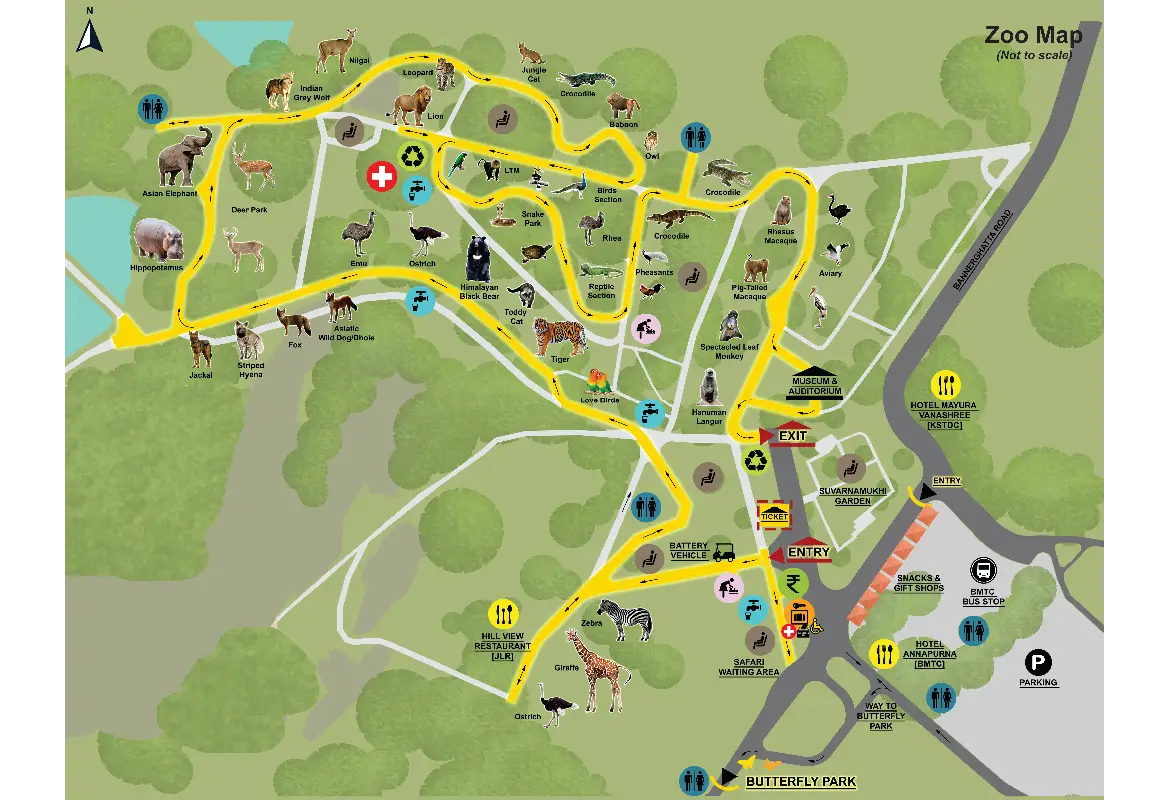 Make the most of your trip with the most up-to-date Bannerughatta Biological Park Map. Navigate the park’s diverse zones, from the Butterfly Park to the Safari area, and discover hidden gems like the Lion and Tiger Safari.