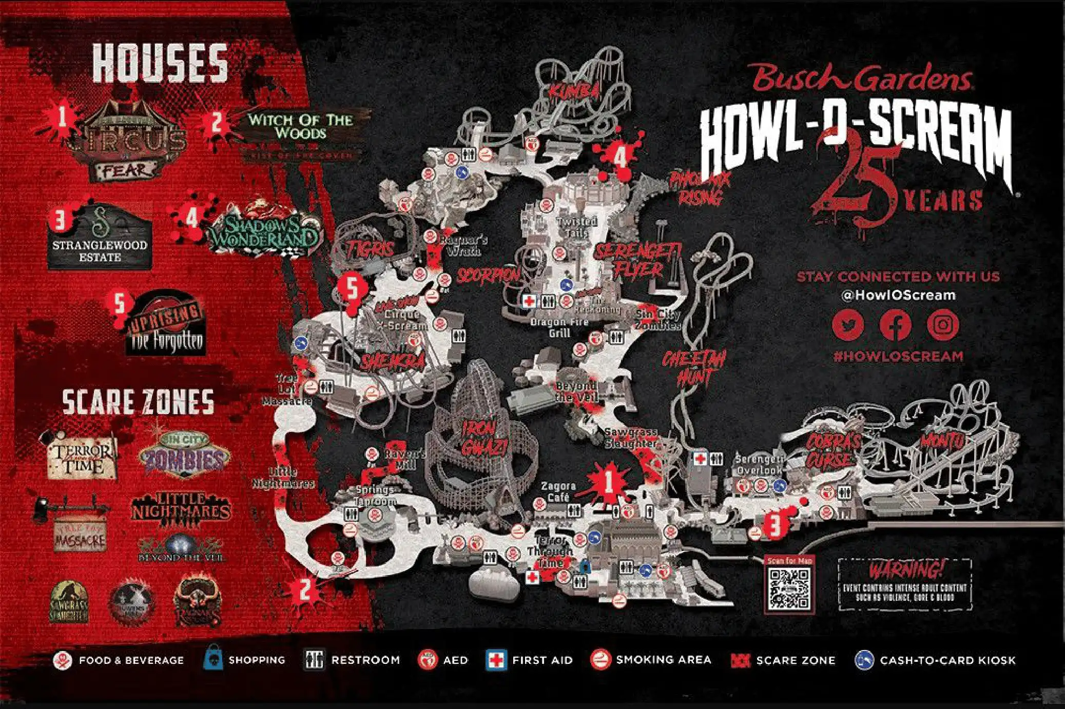Busch Gardens Tampa Bay Howl-O-Scream Map (2025-2024)