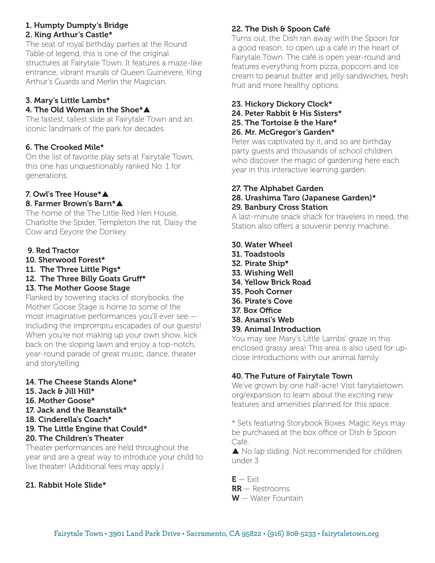 Fairytale Town is located in Sacramento, California. It sits inside William Land Park at 3901 Land Park Drive, directly across from the Sacramento Zoo.