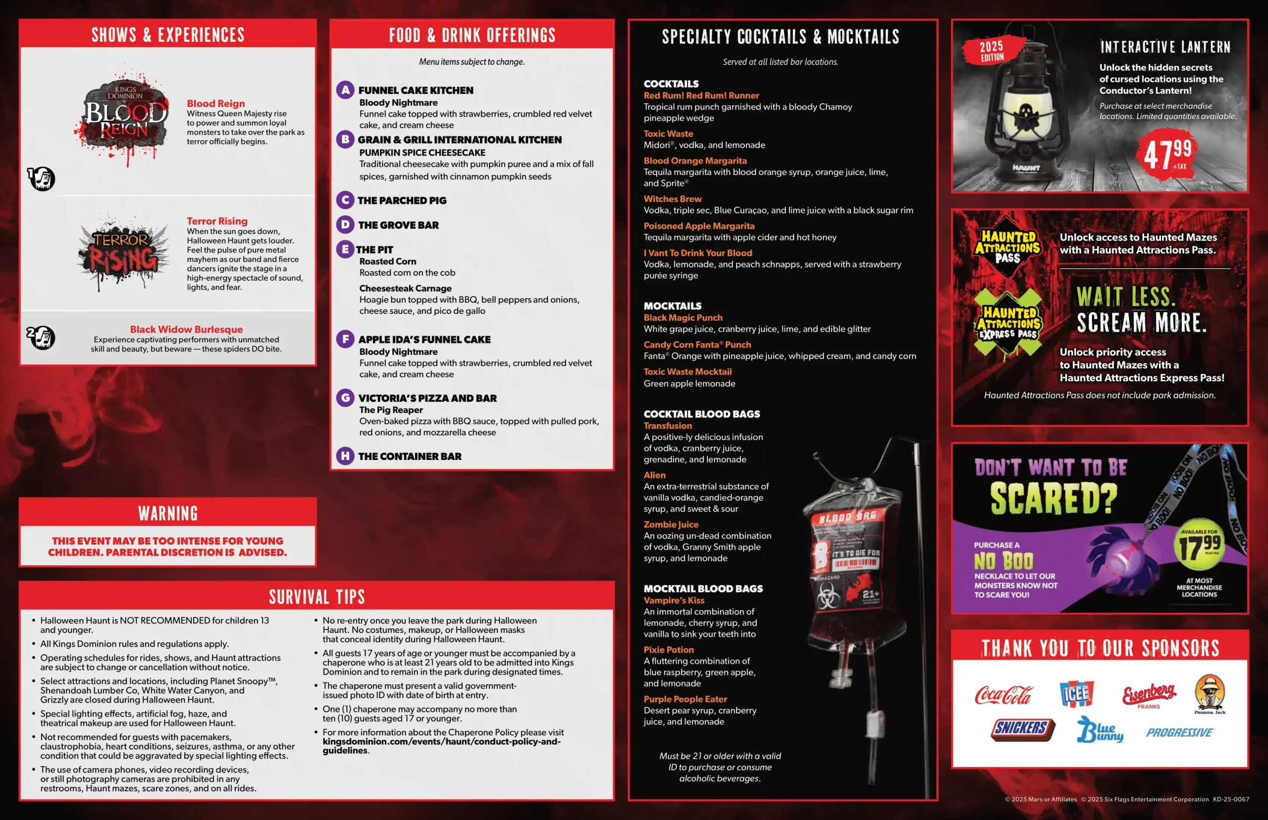 Printable Kings Dominion Halloween Haunt Map PDF 2025