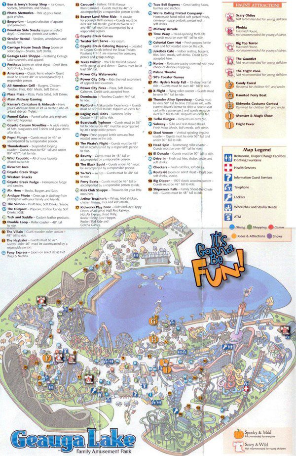 A Geauga Lake map helped decode the split personality of the park—rides and lands on one side, dining and shows on the other, all threaded by tram stops and lakeside views. Crowds thinned after dusk, leaving coaster silhouettes against Ohio’s summer sky—a quiet end to a loud day.