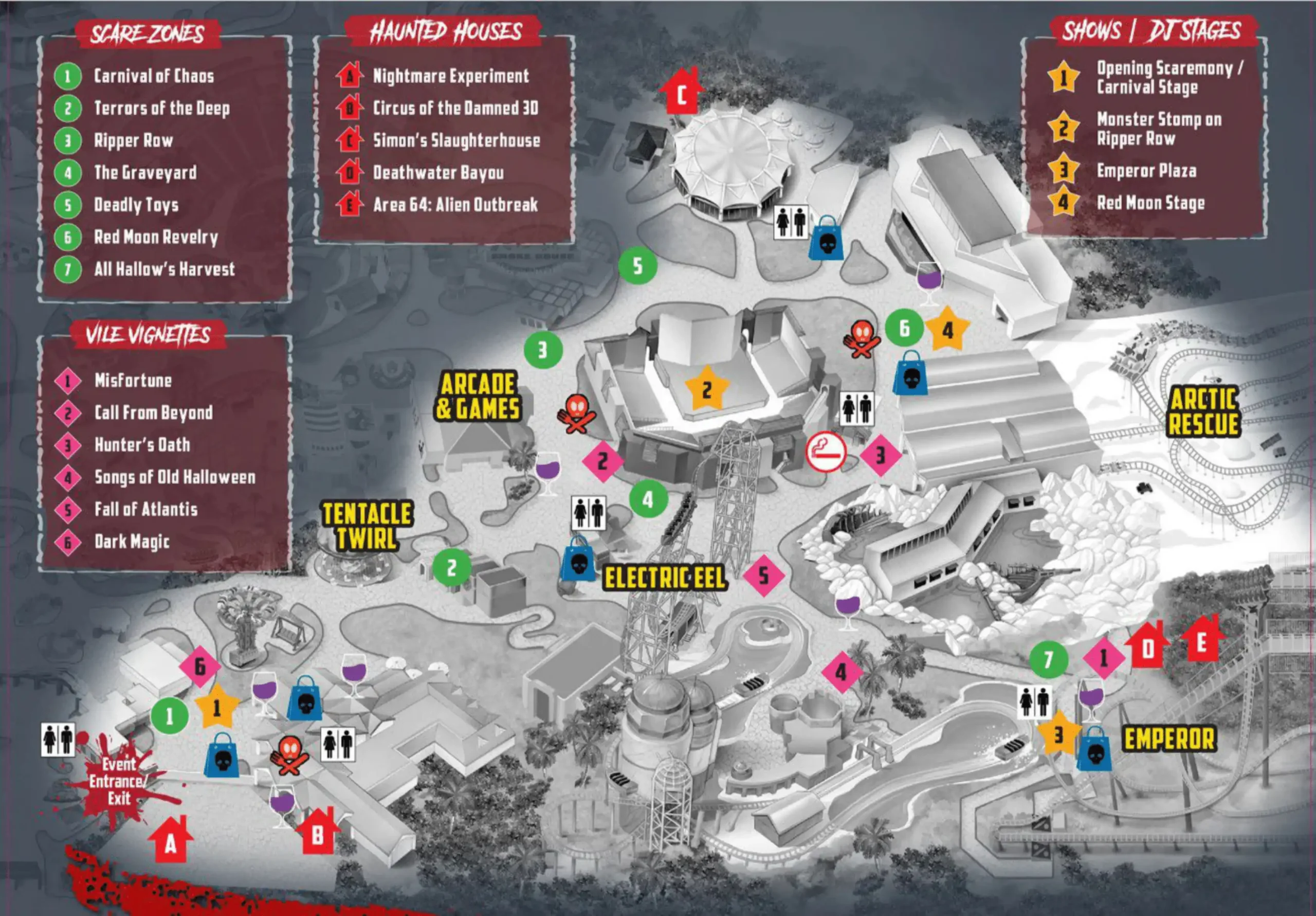 Printable SeaWorld San Diego Howl-O-Scream Map PDF 2024