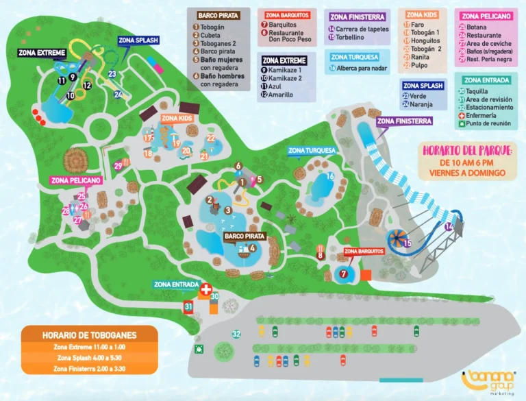 Location: Jalisco, Mexico Years Active: 2001 – Active Ready to dive into the vibrant world of Acuático Santa Rita Park? This park map has every detail covered, from locating the thrilling El Torbellino water slide to finding relaxation at La Laguna de los Sueños. Whether you’re seeking excitement at Rápidos del Río Loco or planning…