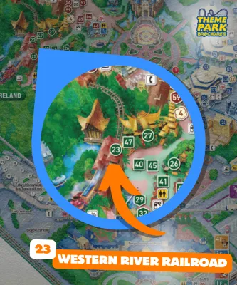 Insider Tip: Unlike its counterparts in other Disney parks, Tokyo Disneyland’s Western River Railroad uniquely travels through Adventureland, offering views of the Jungle Cruise and Rivers of America. There’s also a hidden Mickey on the rock formation near the Tiki Room—an Easter egg often missed by guests enjoying the scenic journey!