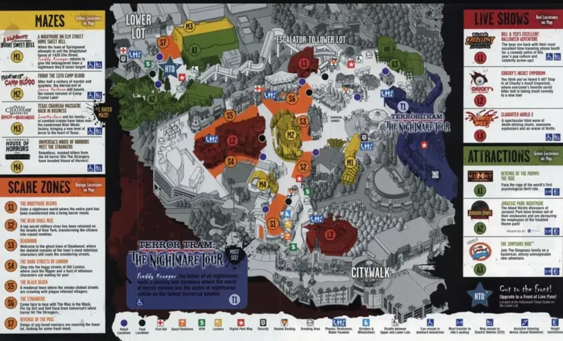Printable Universal Studios Hollywood Halloween Horror Nights Map PDF 2024