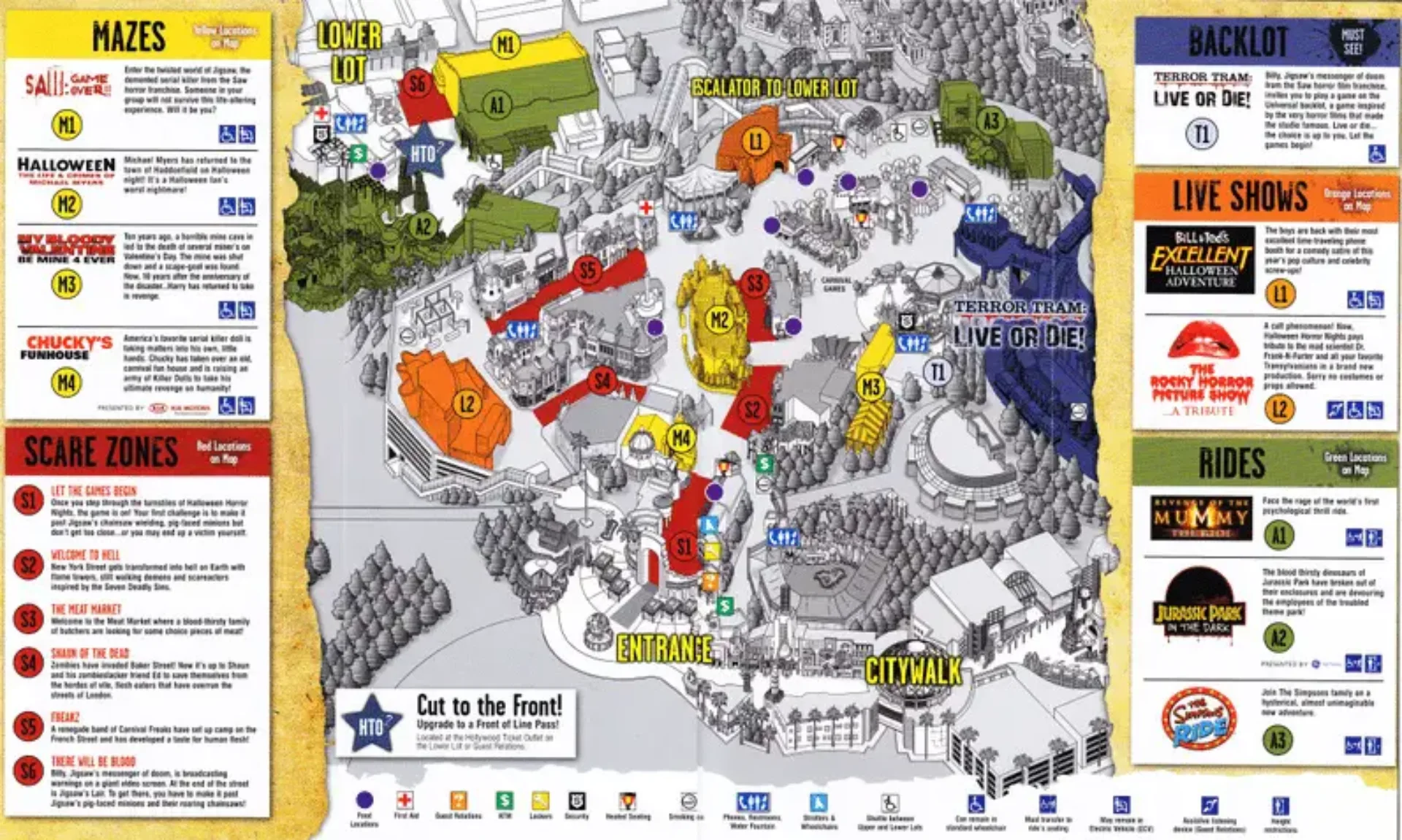 Universal Studios Hollywood Halloween Horror Nights Map (2024-2008)