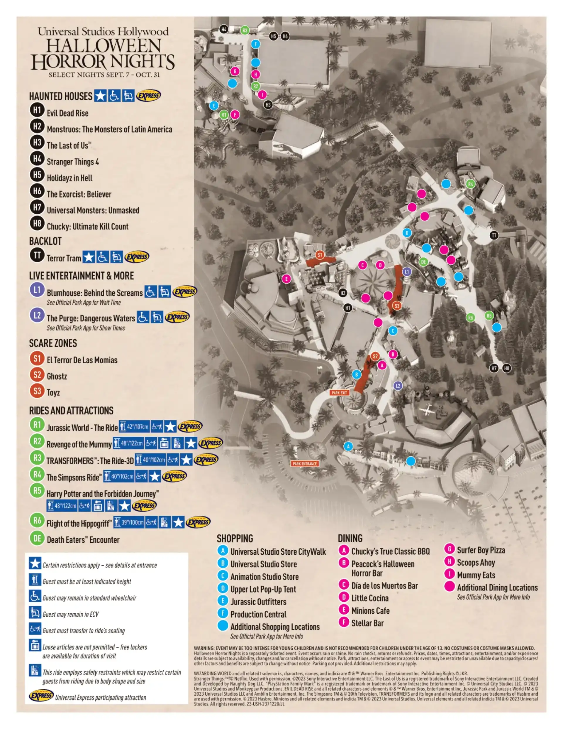 Universal Studios Hollywood Halloween Horror Nights Map 2023